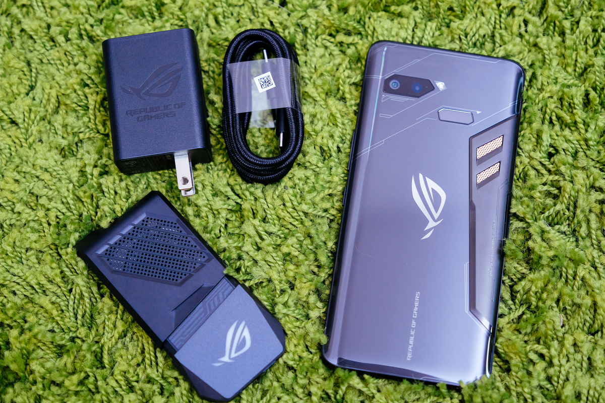 分別是傳輸線(兩端都是 USB Type-C)、AeroActive 散熱風扇及 ROG Phone。