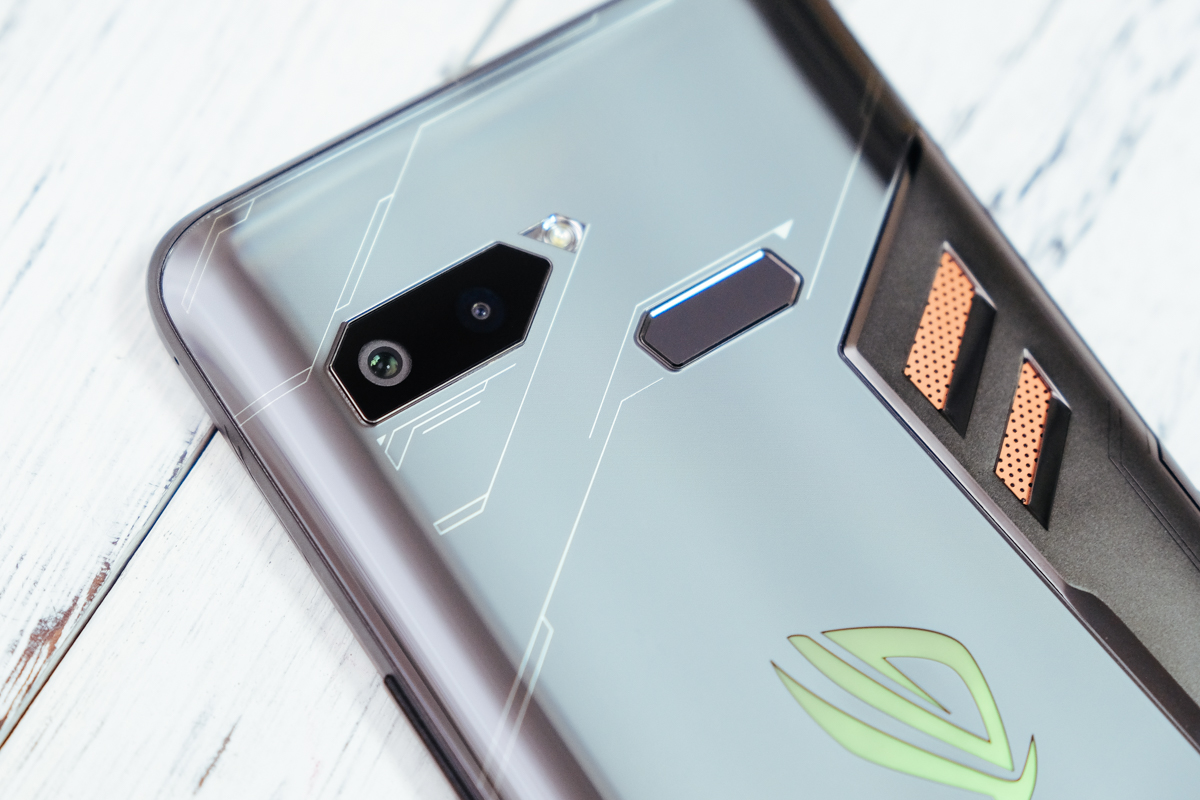 在鏡頭一旁的就是指紋辨識並支援 NFC 感應,不要懷疑,做的超有科技感的,這麼一來阿湯才突然想起,為什麼所有智慧型手機的指紋辨識都只是圓型或方型為主,怎麼都沒有設計過像 ROG Phone 這種特殊形狀,超好看的。
