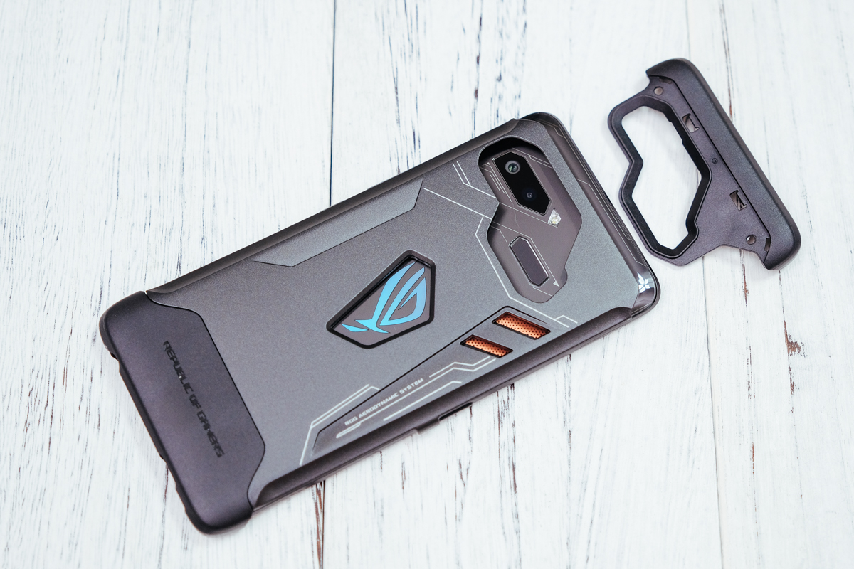 這 ROG Phone 專屬保護殻沿續原背蓋的設計樣風樣及樣式,透過三片組合的保護殻來裝上去,這保護殻還蠻堅硬的,應該摔個幾次都不會讓手機受傷(但最好還是不要亂摔啦)。