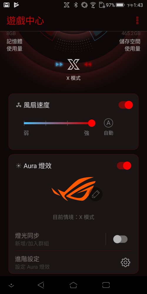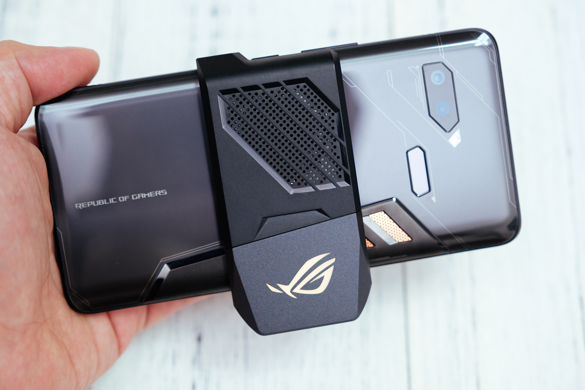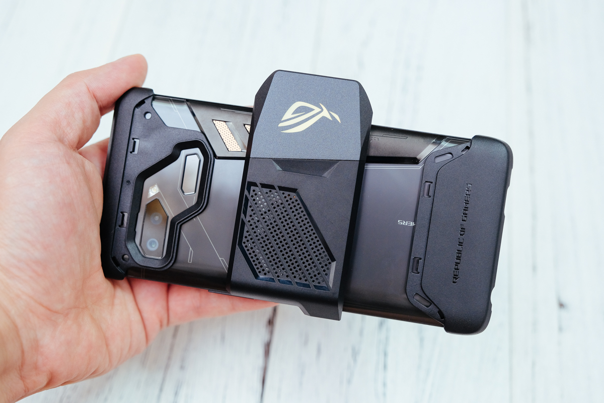 接下去後會像這樣,有個風扇可以幫助手機更快的降溫且風扇的 ROG Logo 也會發光並支援燈光同步。