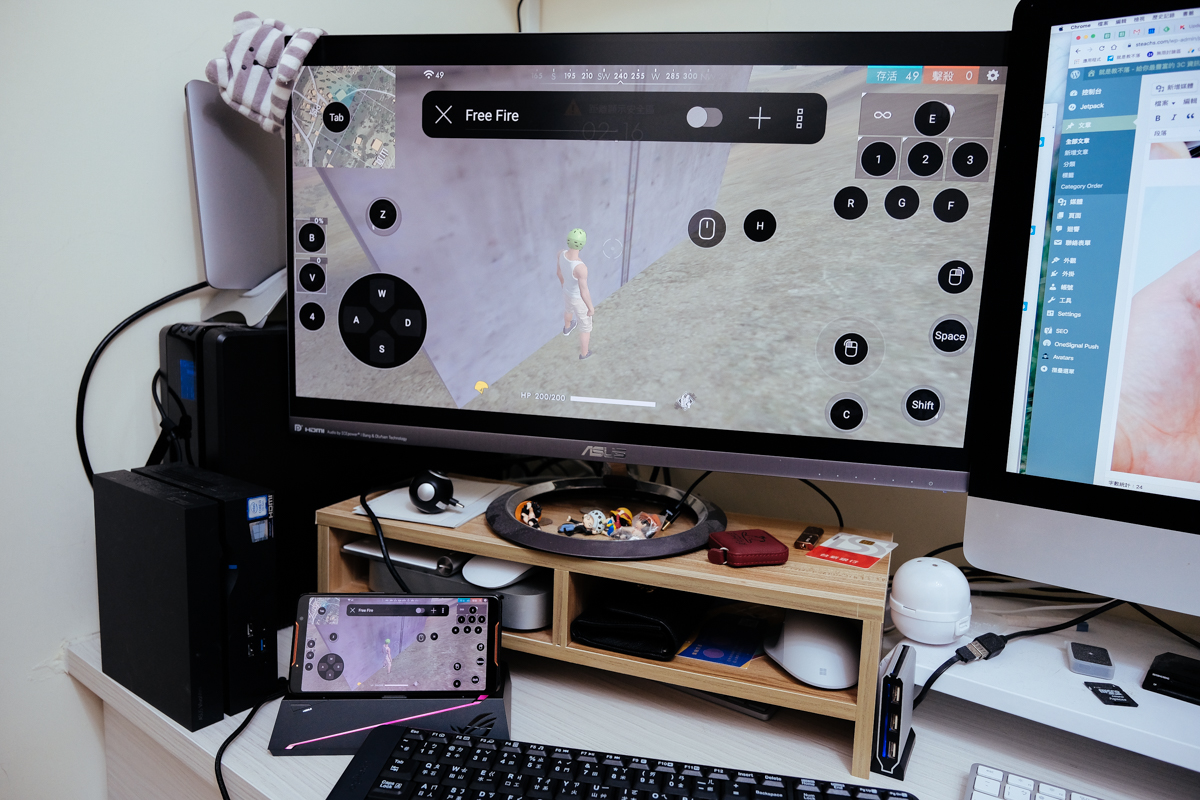 鼠鍵設定則是可以搭配 Type-C 五合一擴充底座 或桌上型遊戲基座再加上鍵鼠來使用,Free Fire 這遊戲就超適合這樣玩,可以對應的按鍵多更詳細。