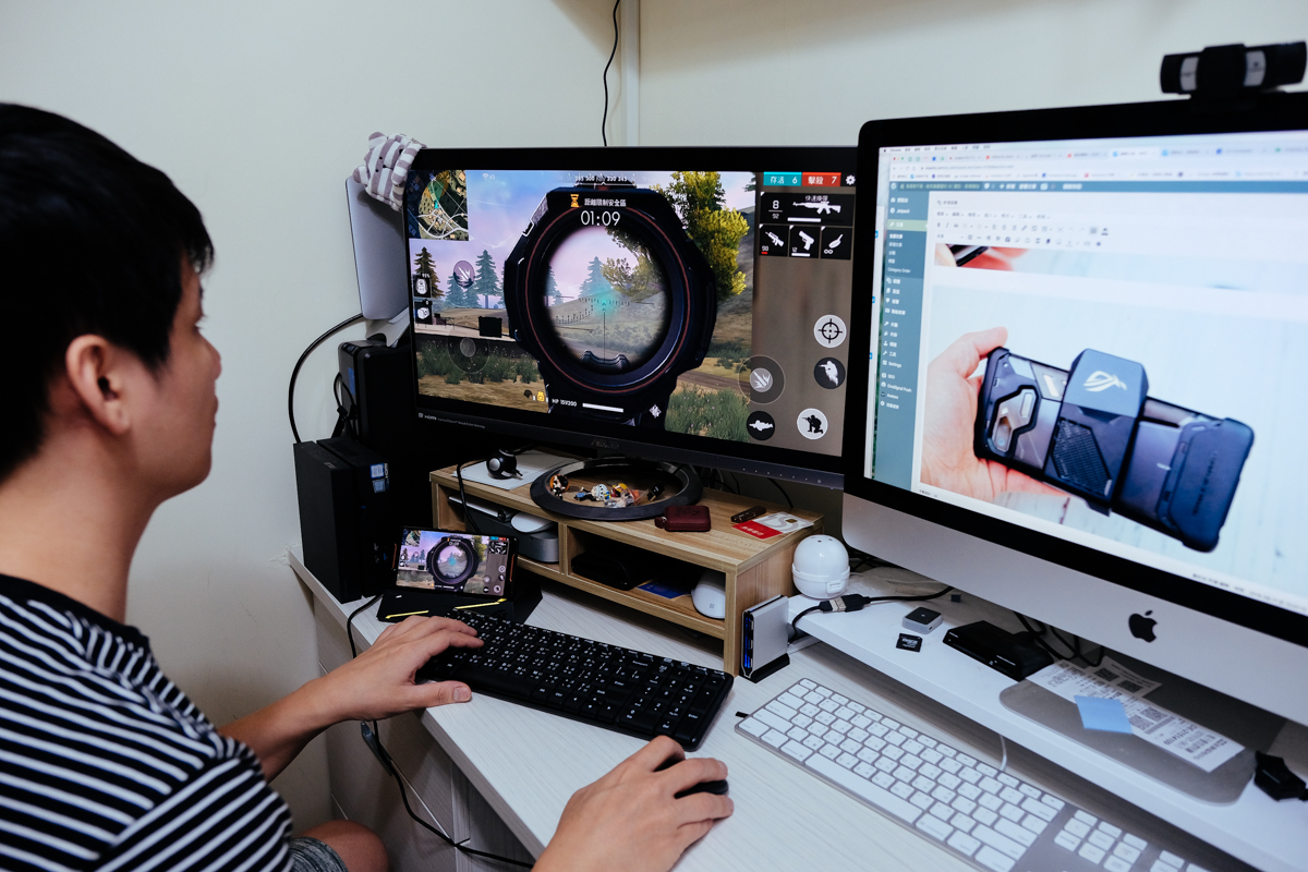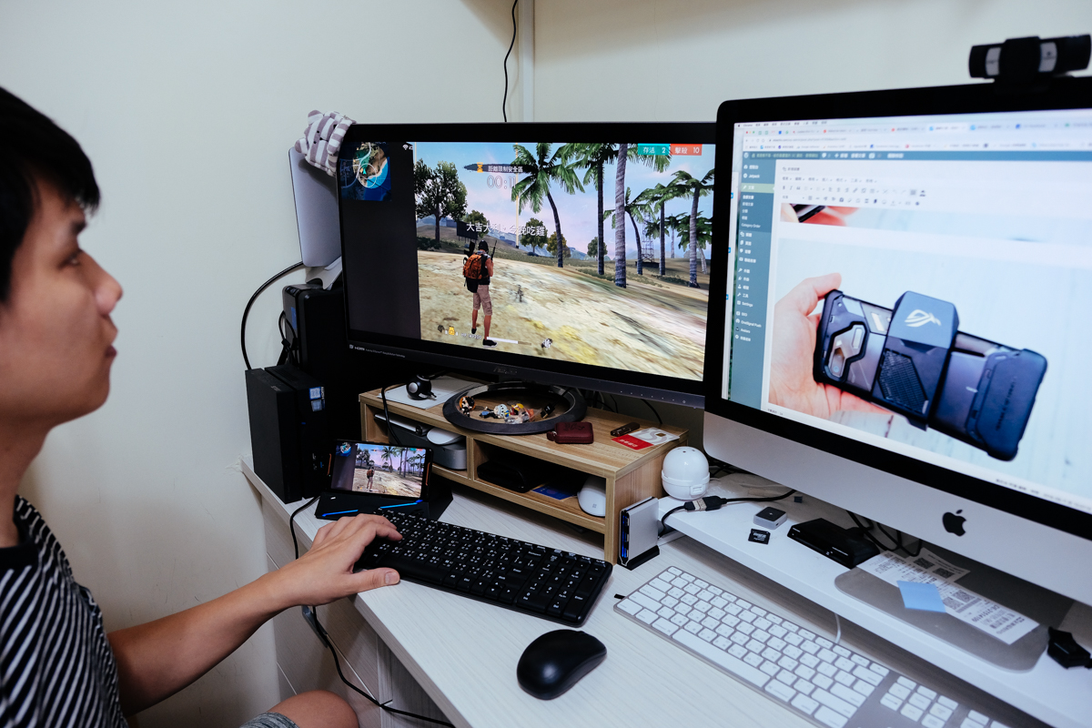 老實說之前阿湯就已經有接觸過市面上目前已經有的電競手機,不過老實說,玩過後覺得沒有太大的動力讓人為了遊戲而買,覺得用一般的旗艦級手機甚至是中高階玩就夠了,並不是規格上的差異,而是在設計上並沒有針對遊戲有太大的優勢。而 ASUS 這次推出的 ROG Phone 在先前一有消息時阿湯就非常的期待,雖然我不是專業級玩家,但熱門的遊戲我是一款都不會錯過的人,好歹也算是個業餘職業玩家了,ROG Phone 本身搭載的 AirTriggers 超音波觸控鍵就已經讓手機本身多了二個快捷鍵可以使用,其實已經很實用,但沒想到這次 ROG Phone 連帶一起推出了六個配件真的很驚人,大全配還是用 ROG 行李箱裝著,真的超屌。 在全部的配件中,阿湯自己的搭配方式有二種,這邊提供給大家參考:- GameVice 遊戲控制器 + WiGig 無線投影底座 + 電視