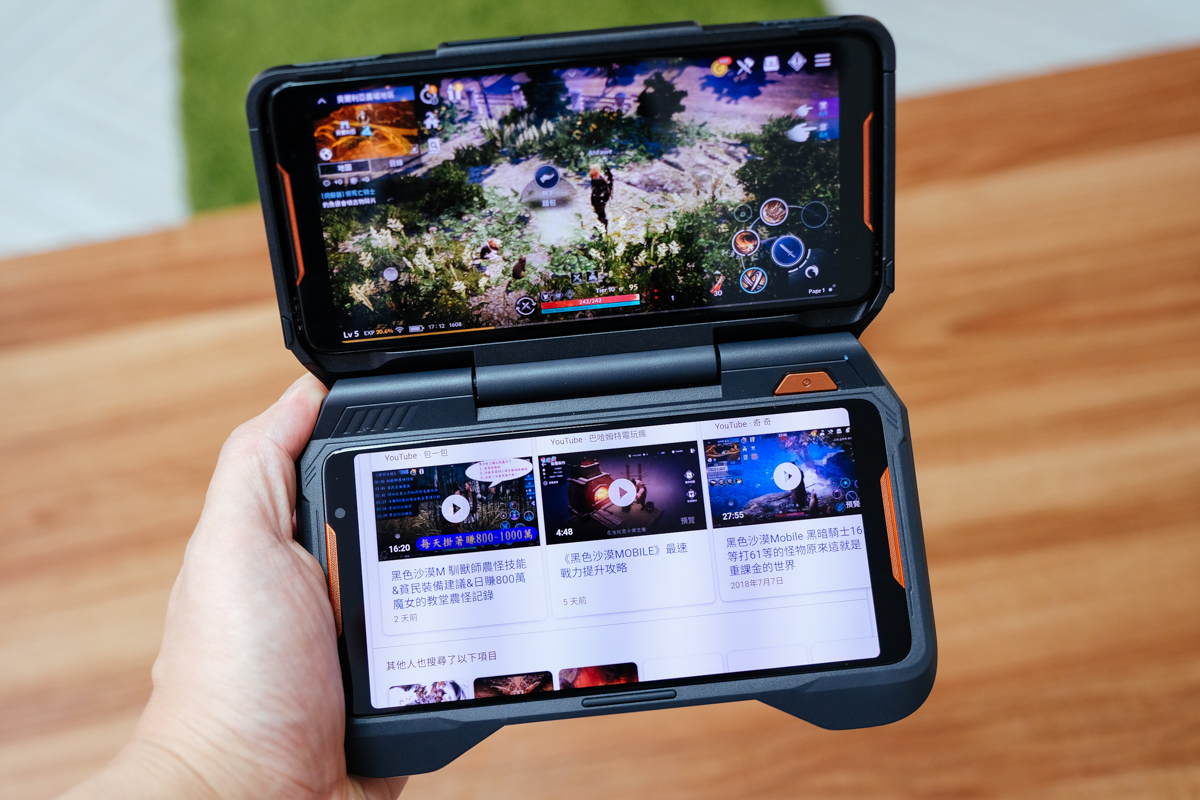 合體後看起來就很厲害,光是前置立體聲揚聲器就變成了 4 顆(上下各二),且內建還有電池 6000mAh,加上手機電量共有 10,000mAh 超大電量可以使用,不用擔心因為使用雙螢幕會導致續航力減少的問題。