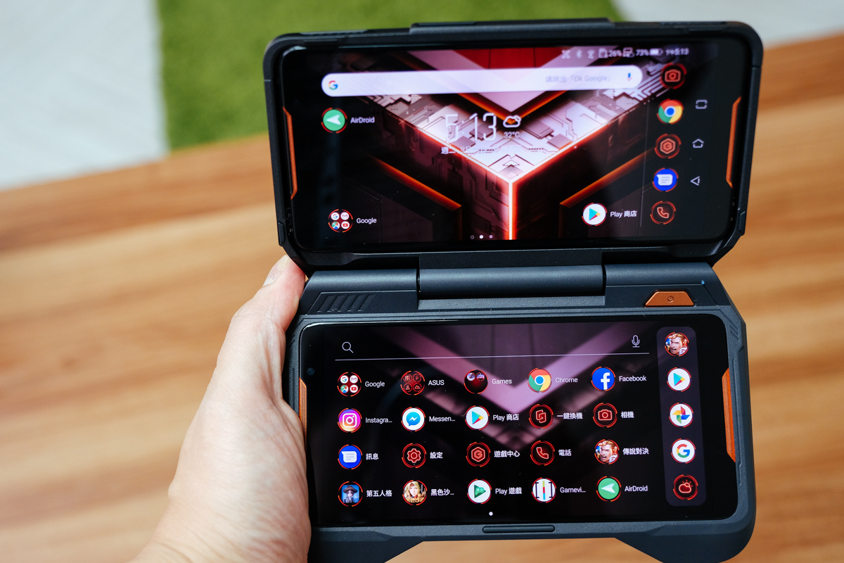 另外合體之後,上方為 ROG Phone 本身的畫面,而下方的第二螢幕會顯示你手機裡全部應用程式的列表,你可以在第二螢幕完全獨立操作使用其他應用程式,第二螢幕同樣可以觸控,不是單純的延伸畫面哦。