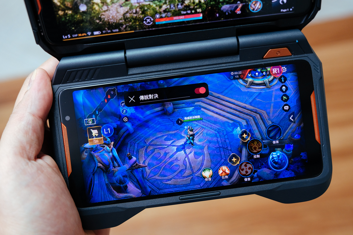 另外提醒大家,當使用雙螢幕基座時,遊戲精靈僅支援下方第二螢幕,像阿湯就將 L1 跟 R1 用在傳說對決裡,左鍵點擊建議裝備、右鍵則是查看全員的列表。