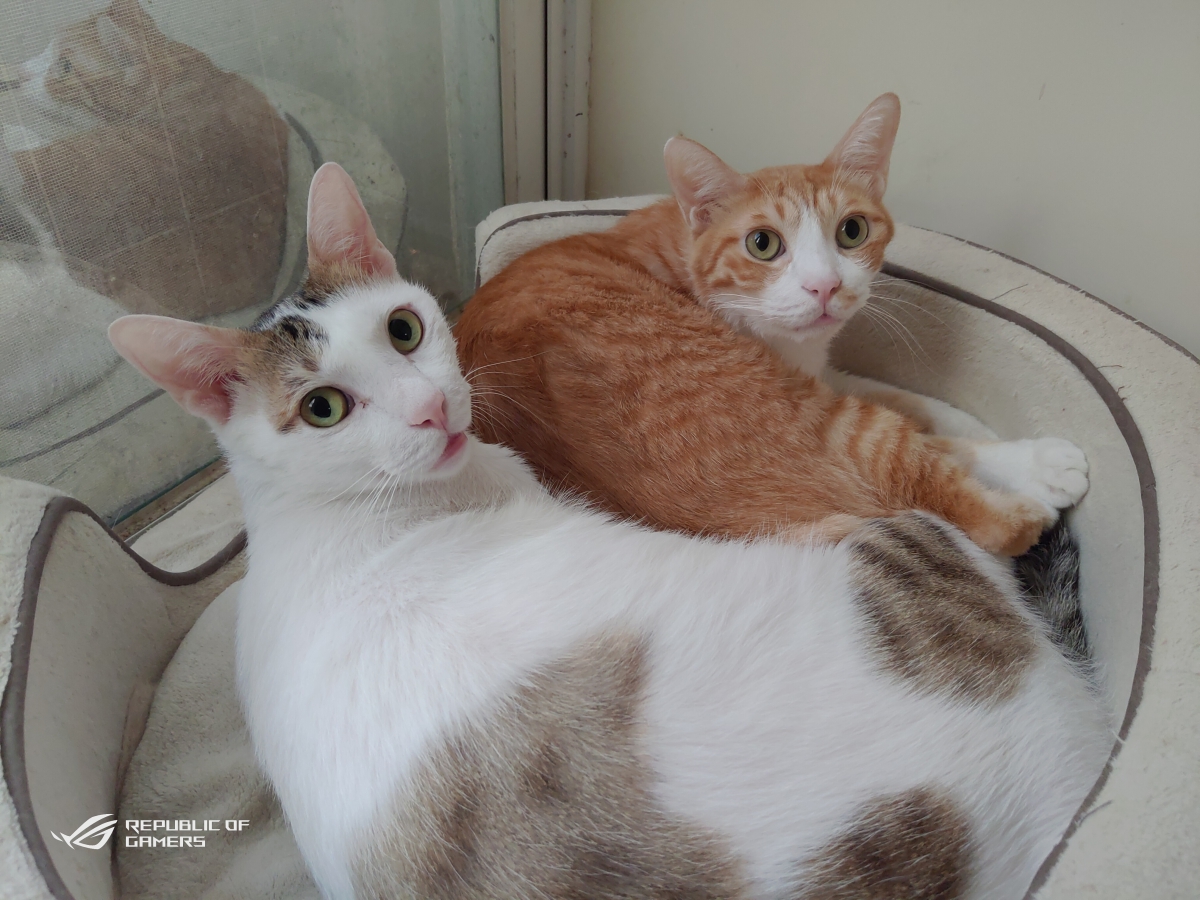 然後為大家隆重介紹 ROG Cats(誤),阿湯其實只是先放張照片告訴大家,透過 ROG Phone 拍攝的照片還可以加上有 ROG 玩家共和國 Logo 及字樣的浮水印,真的是裡裡外外都是 ROG 無誤。