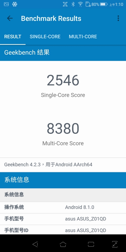 GeekBench 在單核心獲得 2546、多核心為 8380。
