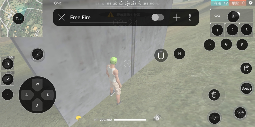 搭配鍵鼠來玩 FreeFire 真的是猛猛的,只要透過遊戲精靈內建的鍵鼠設定,基本上會自動偵測到 FreeFire 遊戲,然後畫面會顯示所有按鍵的配置,記住後就可以開玩了。