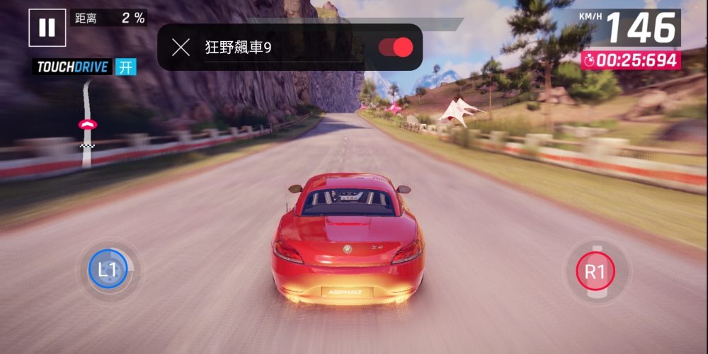 只要已經有支援的遊戲,會在中間就顯示遊戲名稱,打開後,確認好按鍵對應的位置就可以了,以狂野飆車來說算是簡單的,只用到 L1 跟 R1。