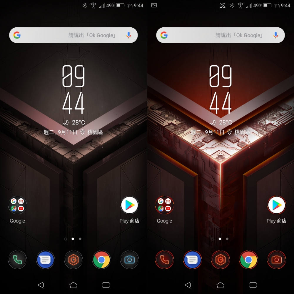 如果你眼尖的話,還會發現,如果沒有開啟 X 模式,桌面會是像下左圖一樣黑灰色,開啟 X 模式後才會像下右圖一樣燒起戰鬥的烈火,而且有動畫哦,大家可以試試看,相當的酷炫。