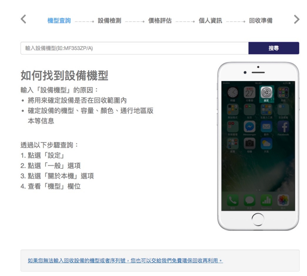 進入後輸入你的 iPhone 設備機型後按下搜尋,如果你不知道機型可以直接往下看怎麼找出來,或者直接 Google 你的手機機型也是可以的。