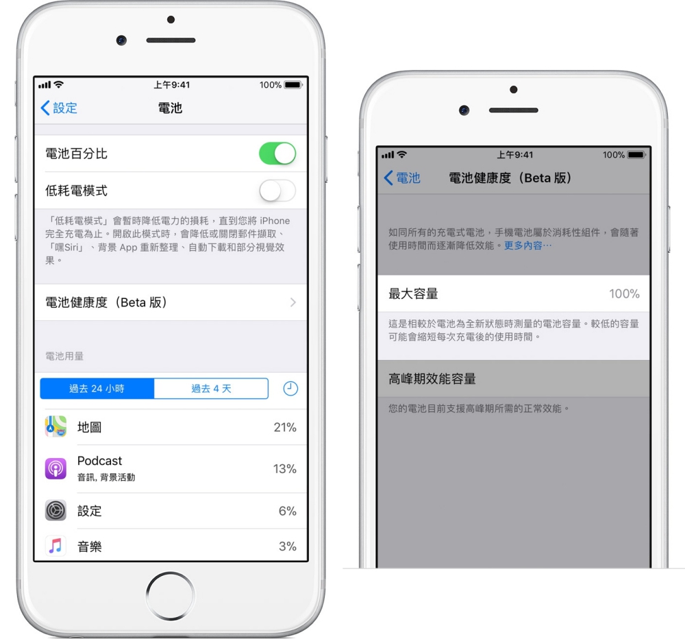 以前查詢比較麻煩,阿湯就不解釋,現在只要是 iOS 11.3 往後的版本通通都有內建,目前為 Beta 版,在電池裡面就可以看到,至於怎樣算不健康?阿湯覺得最大容量低於 90% 就可以換了,如果到 85% 算是很低了,低於 80% 就更不用說,快去換吧。