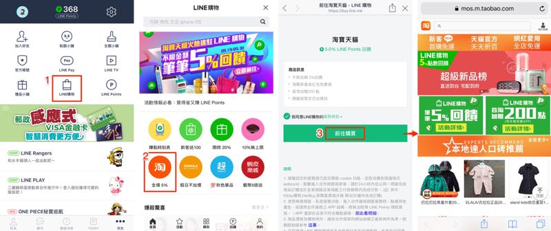 1) 活動期間透過「LINE購物」前往淘寶天貓完成消費