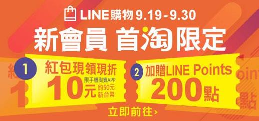 - 活動說明:活動期間透過「LINE購物」加入淘寶的新會員,便能獲得 LINE Points 200 點!