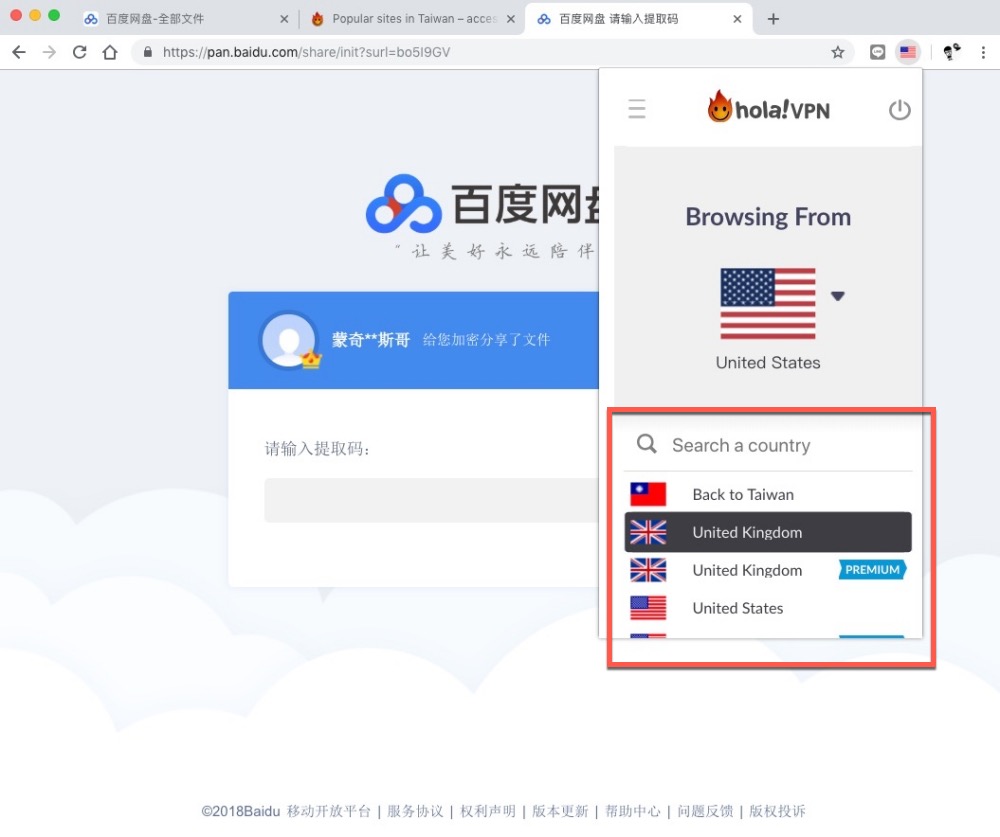 如果瀏覽動不太了,也可以直接換個國家試試,反正只要不是台灣都行,Hola 免費的伺服器有很多可以讓你慢慢換。
