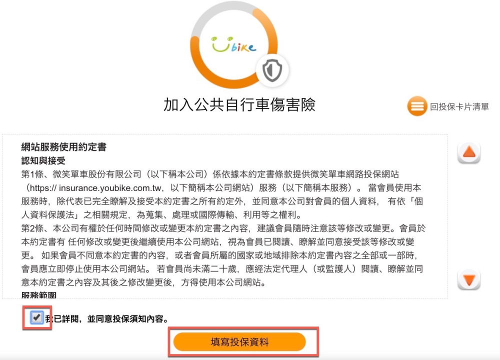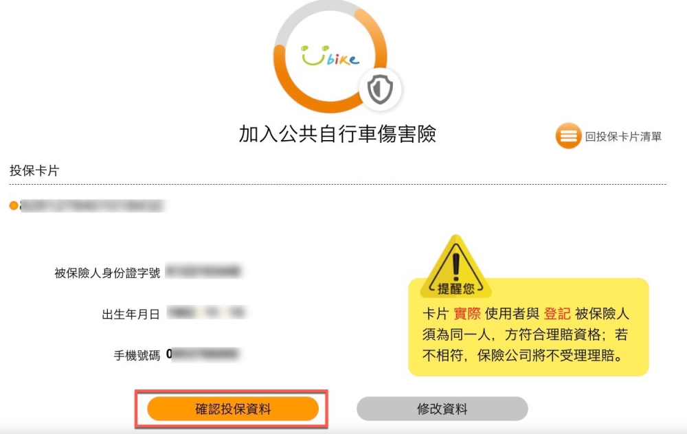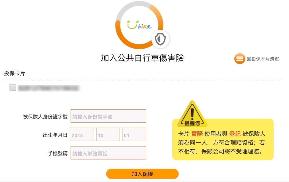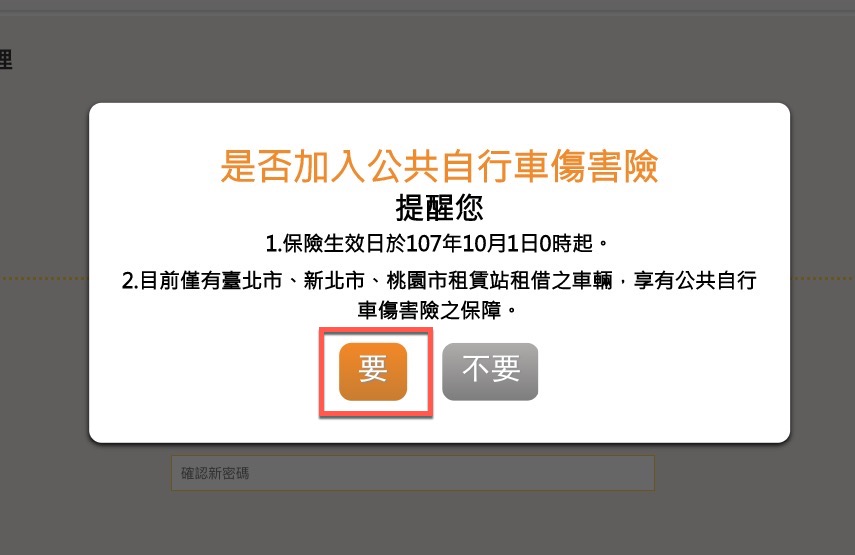 一登入就會跳出提醒詢問你,是否要加入公共自行車傷害險。