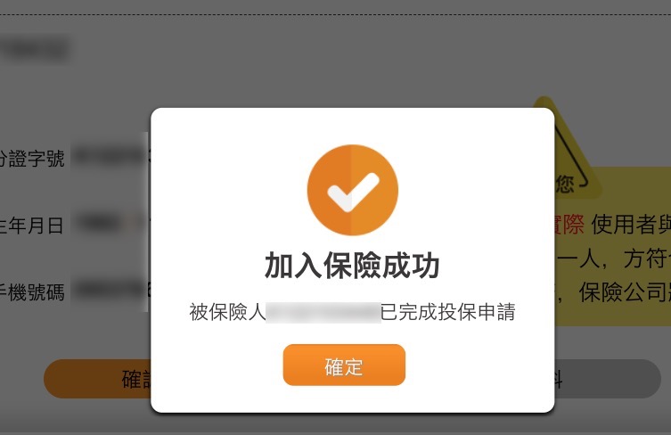 這投保資料很簡單,主要就身份證字號、出生年月日及手機號碼,就可以加入保險。
