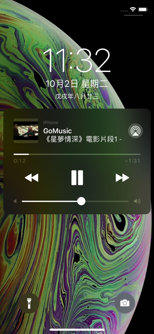 另外當你把 iPhone 進入待機時,是可以持續背景播放的,也會在喚醒畫面顯示播放控制,不過比較有趣的是,在這畫面無法點擊暫停或播放、下一首,有可能是對 iOS 相容性還沒更新,不過沒有影響使用,要停止一樣可以開啟 APP 停止就是。