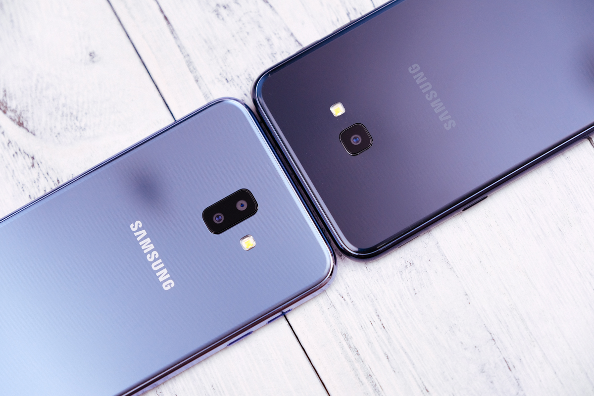 Galaxy J6+ 鏡頭採用 1300 萬像素光圈 F1.9 + 500 萬像素光圈 F2.2,而 Galaxy J4+ 採用 1300 萬像素光圈 F1.9,雖然 Galaxy J4+ 無法拍攝景深,但主鏡頭採用的是 F1.9 的大光圈可以使用。