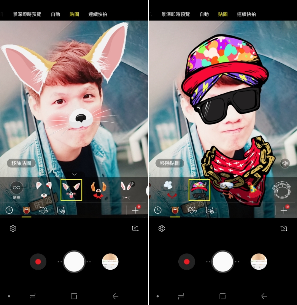 即便是 Samsung 旗下較平價的系列,趣味的貼圖功能還是得有的,可以讓我們直接拍攝一些有趣的照片跟朋友互動。