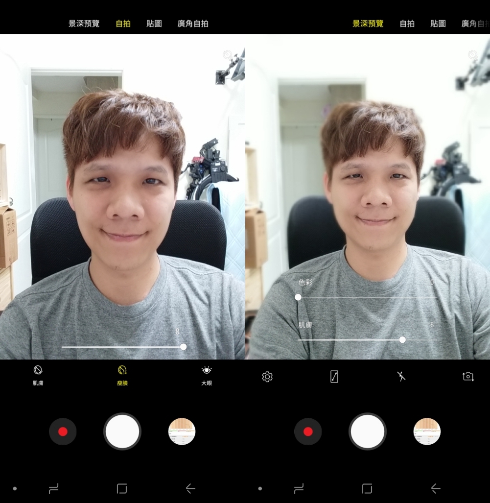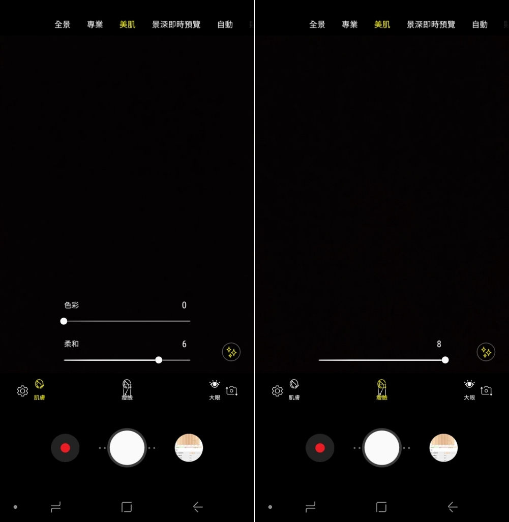 而前鏡頭的部份,不論是自拍或景深模式下都支援美肌功能。