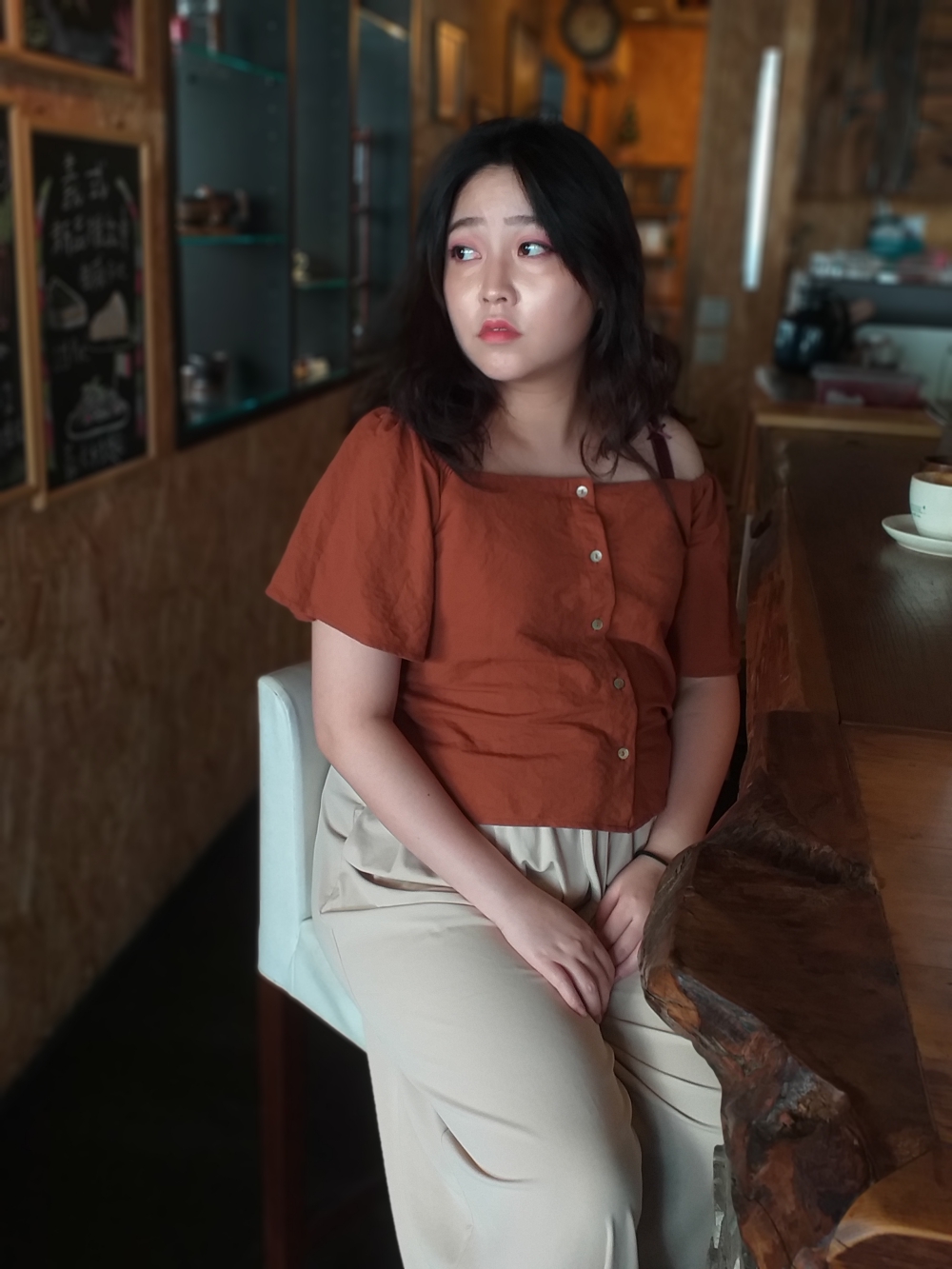 不過實際點擊之後發現,不僅是景深等級可以事後調整,直接點擊畫面還可以重新選對焦點(右圖對焦點改選在背景,就是前景的桌子會是模糊的),如果你想強調人像,還可以透過重新對焦,凸顯主題讓人像更明顯,這真的太實用。
