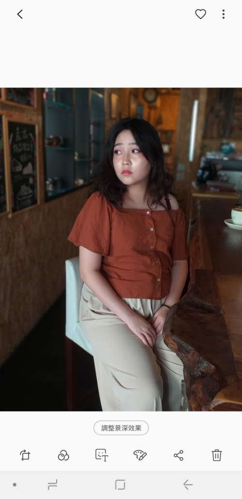 使用主鏡頭的景深即時預覽拍攝的照片,在瀏覽照片時也會發現多一個「調整景深效果」的按鈕可以點擊,讓我們可以事後再調整景深。