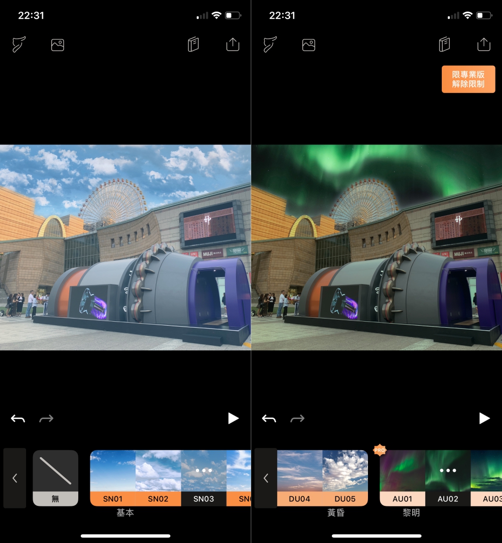 其實光是設定軌道跟錨定就可以試播放看看,就會發現天空動起來囉,想使用就可以直接匯出為影片,也能直接分享到 FB、IG 等社群上。