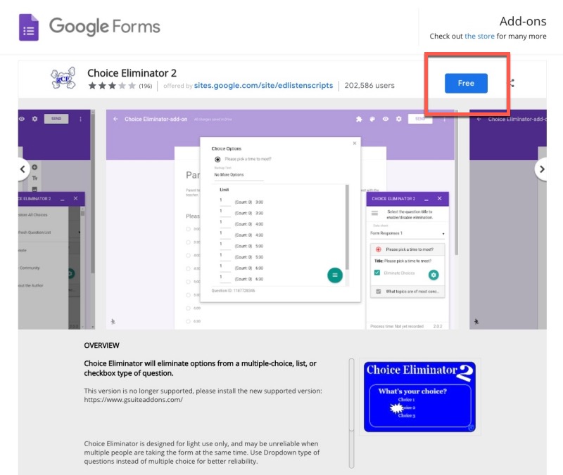 這外掛不知道為什麼透過 Google 表單或試算表裡搜尋不到,但官方的連結是在的,所以我們直接透官方的介紹頁面來安裝吧。
