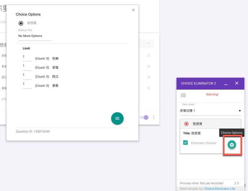 Google 表單外掛 Choice Eliminator 2 使用介紹