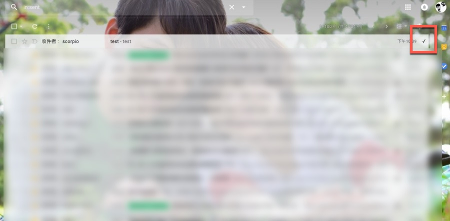 當對方讀取時會在寄件 Email 的最右側看到一個勾勾,表示已經讀取。