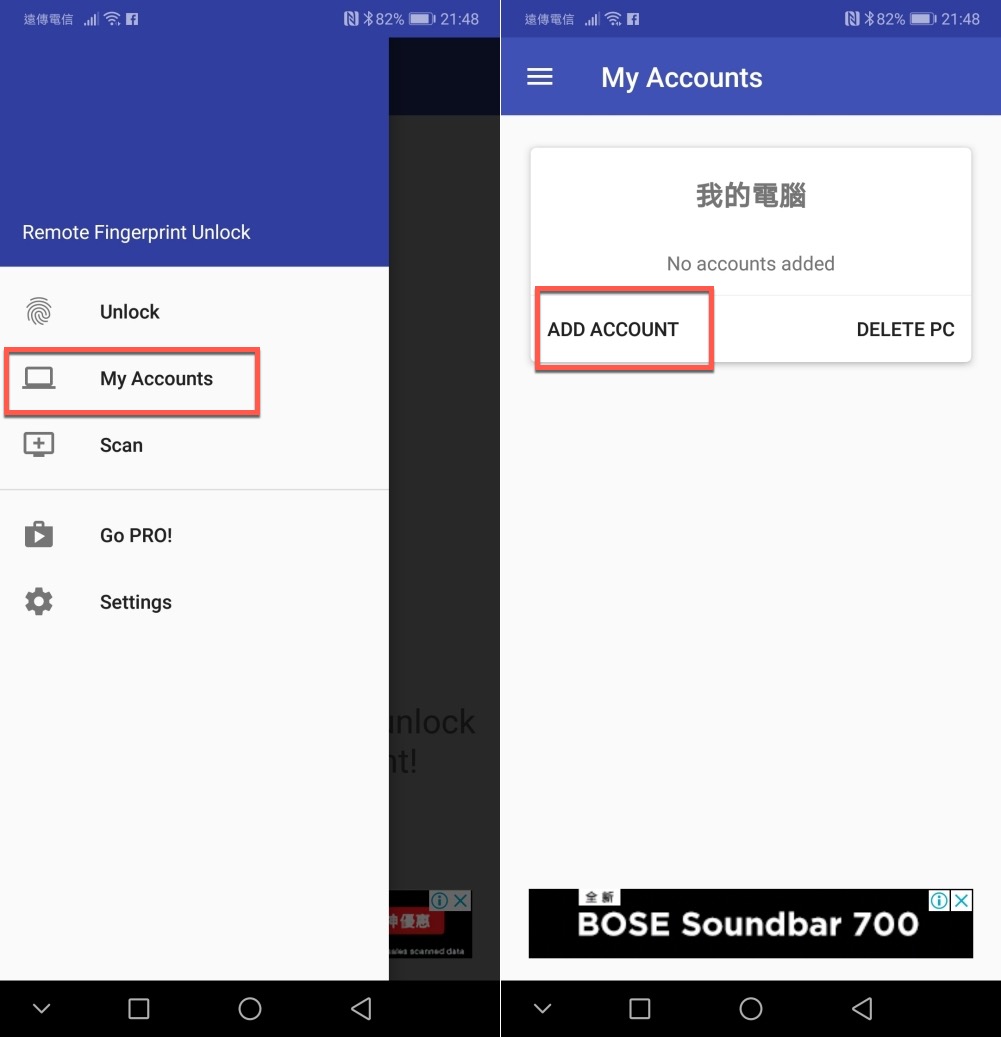接下來進入 My Accounts 會看到我們剛剛加入的電腦,按一下 Add ACCOUNT。