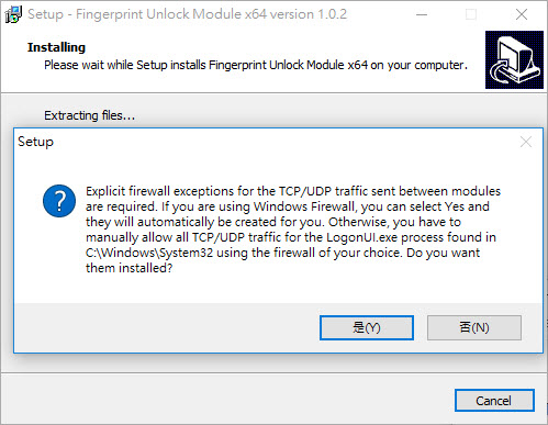 先在你的電腦下載 Fingerprint Unlock Module 檔案進行安裝,安裝時可能會被防毒軟體判斷為可疑檔案,你可以自己決定是否要繼續,阿湯的防毒有跳出訊息,不過我還是覺得沒有問題,大家自己決定吧。