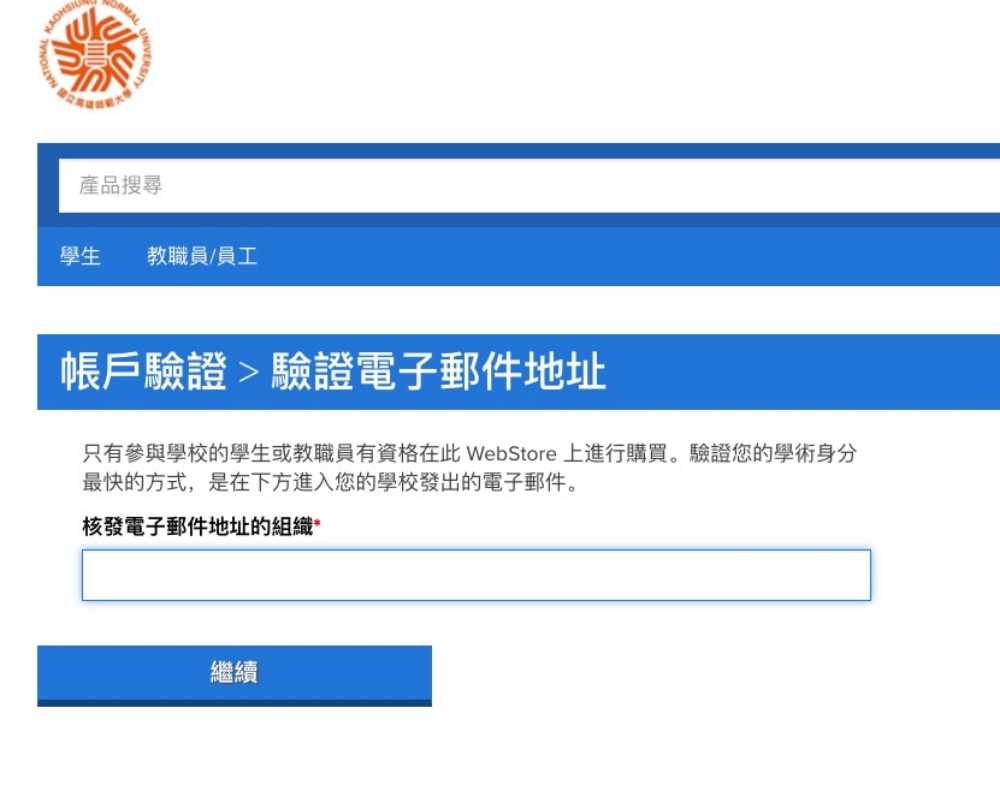 阿湯不太確定是否全部的學校都有,所以你要先搜尋看看,但我查了大約 7~8 間台灣的大學都找的到,在 Country 的地方先輸入 Taiwan(如果是國外的學校也可以),School 就輸入你的學校英文全名,找到你的學校,記得不能輸入中文或英文簡寫,那都會找不到的,阿湯這邊是向網友借到的高師大帳號,所以我用高師大來做範例介紹。