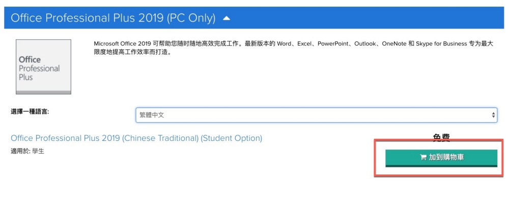 點擊進入後可以看到,這個版本可以選擇語系,且有標註免費,你可以按一下加入到購物車。