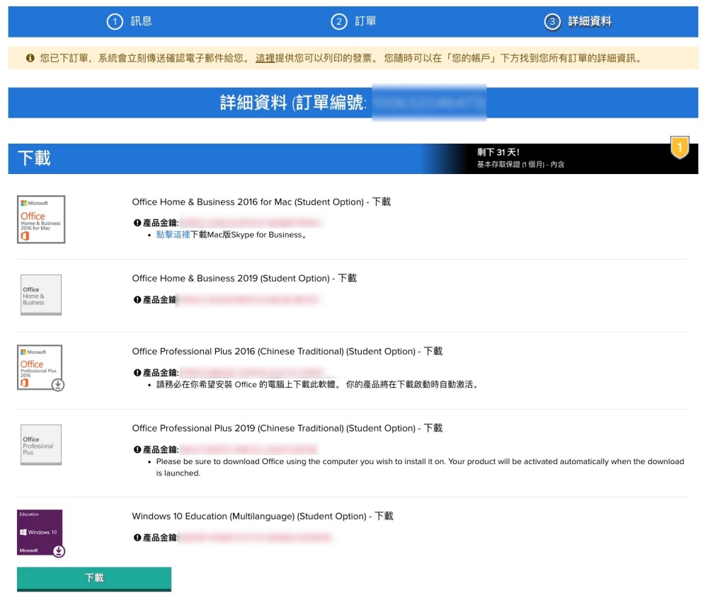 註:有校友提醒,序號存取保證 31 天是指在這網站讀取,所以拿了之後記得要先存下來哦,序號是永久有效的。
