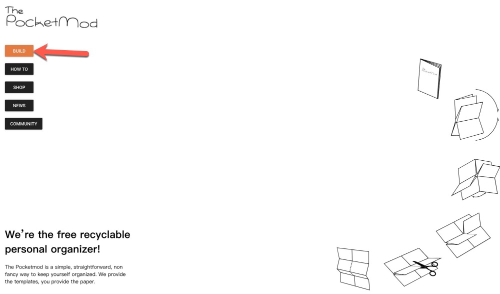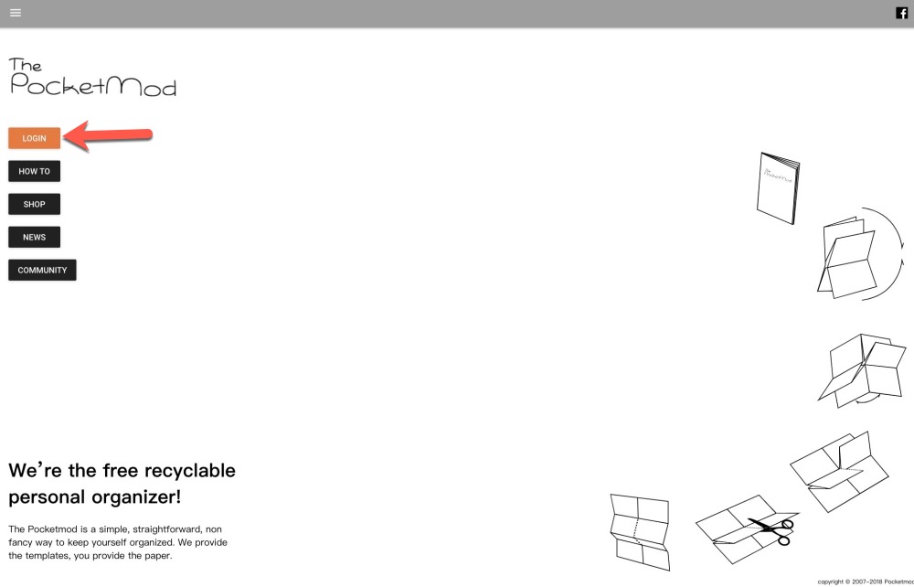 Pocketmod 網站後,要先進行登入,點擊左側的「Login」。