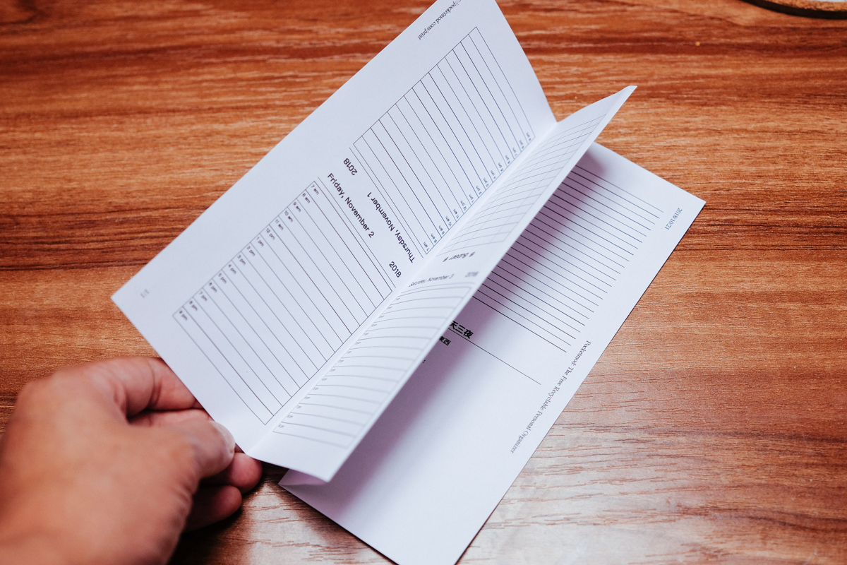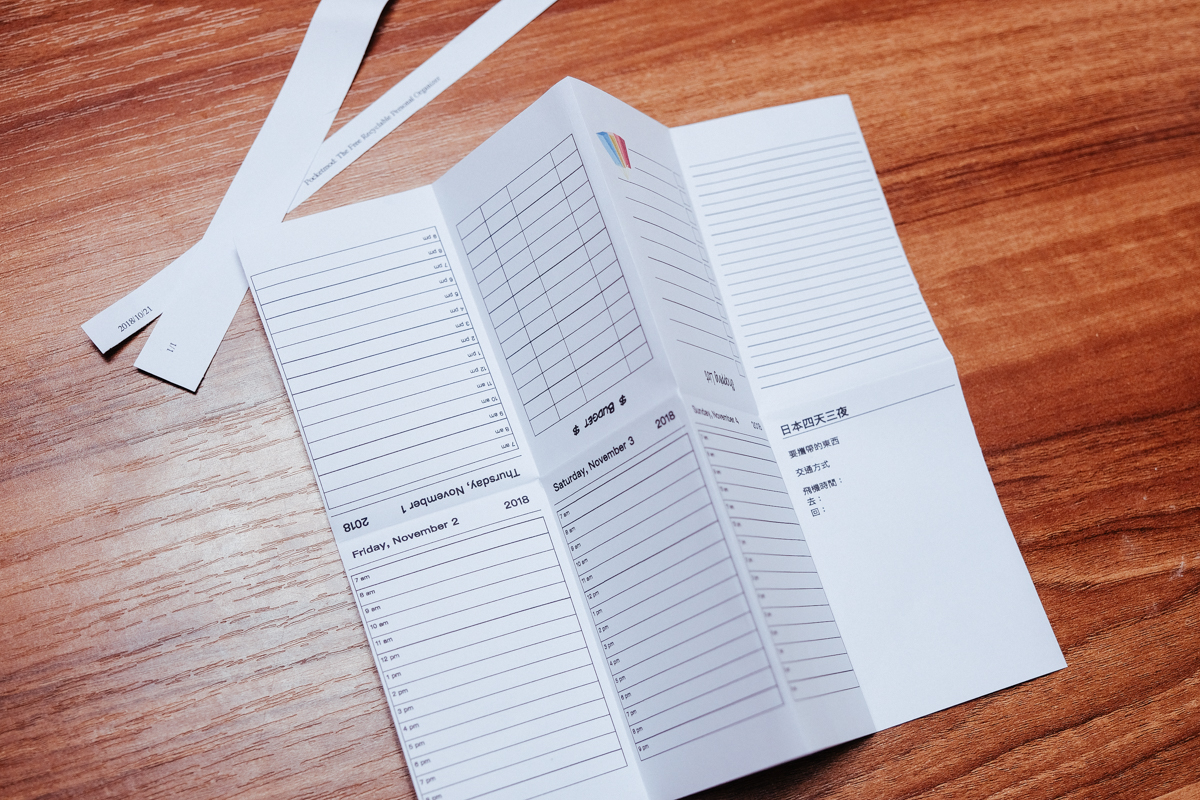 以旅遊來說,可以依日期來設定頁面,比如出去四天,可以前四頁選擇每天的行程表。
