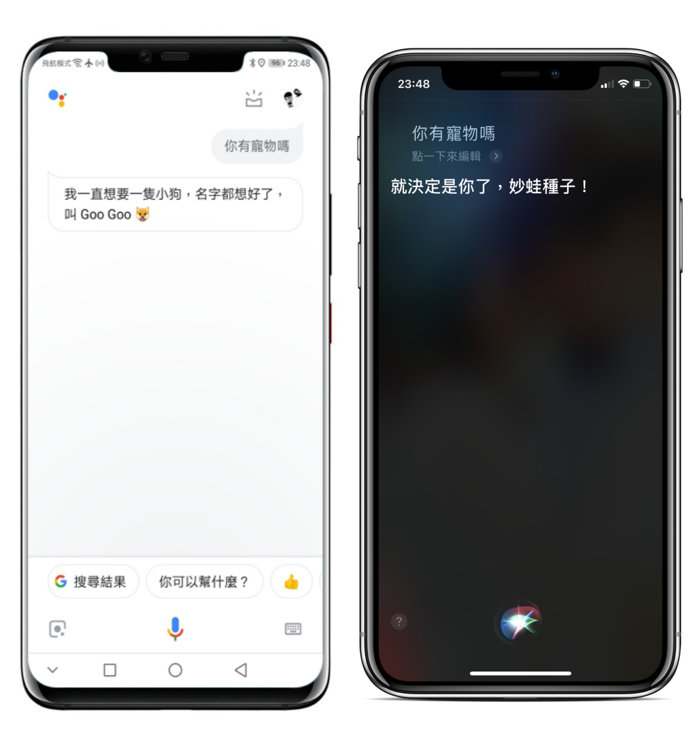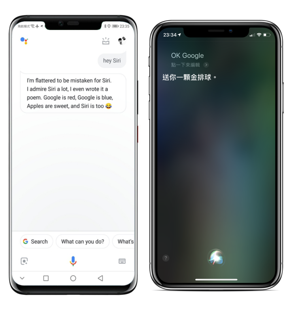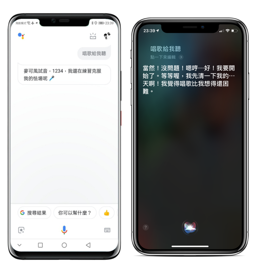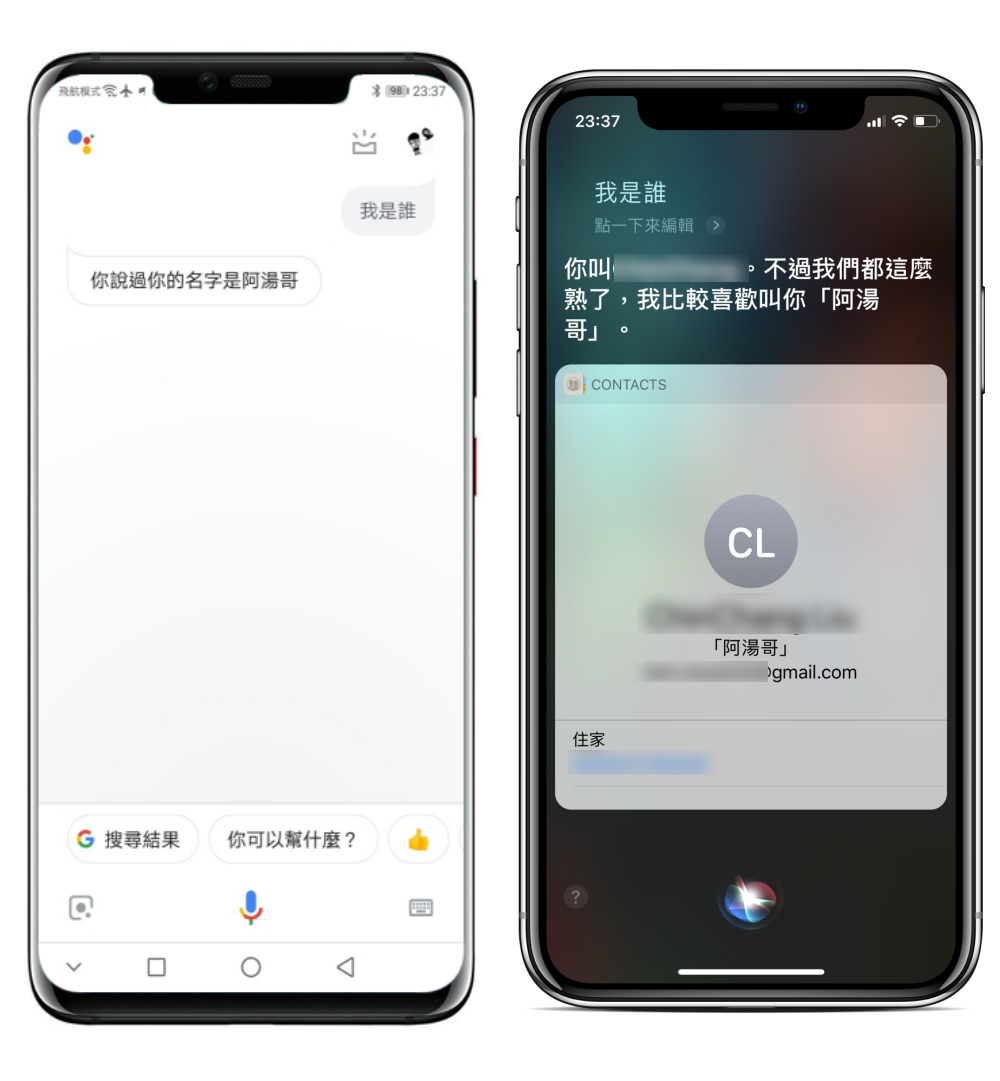 下面開始左圖為 Google 語音助理,右圖為 Siri 語音助理。