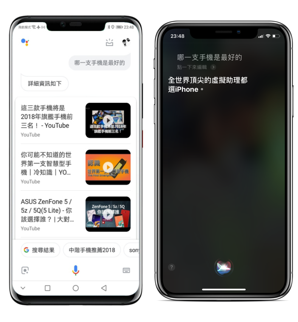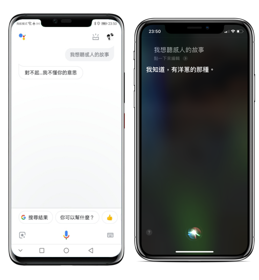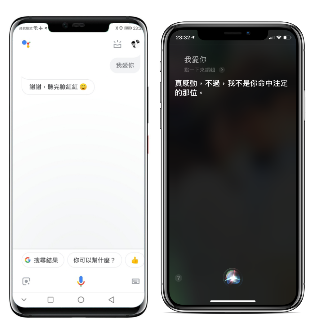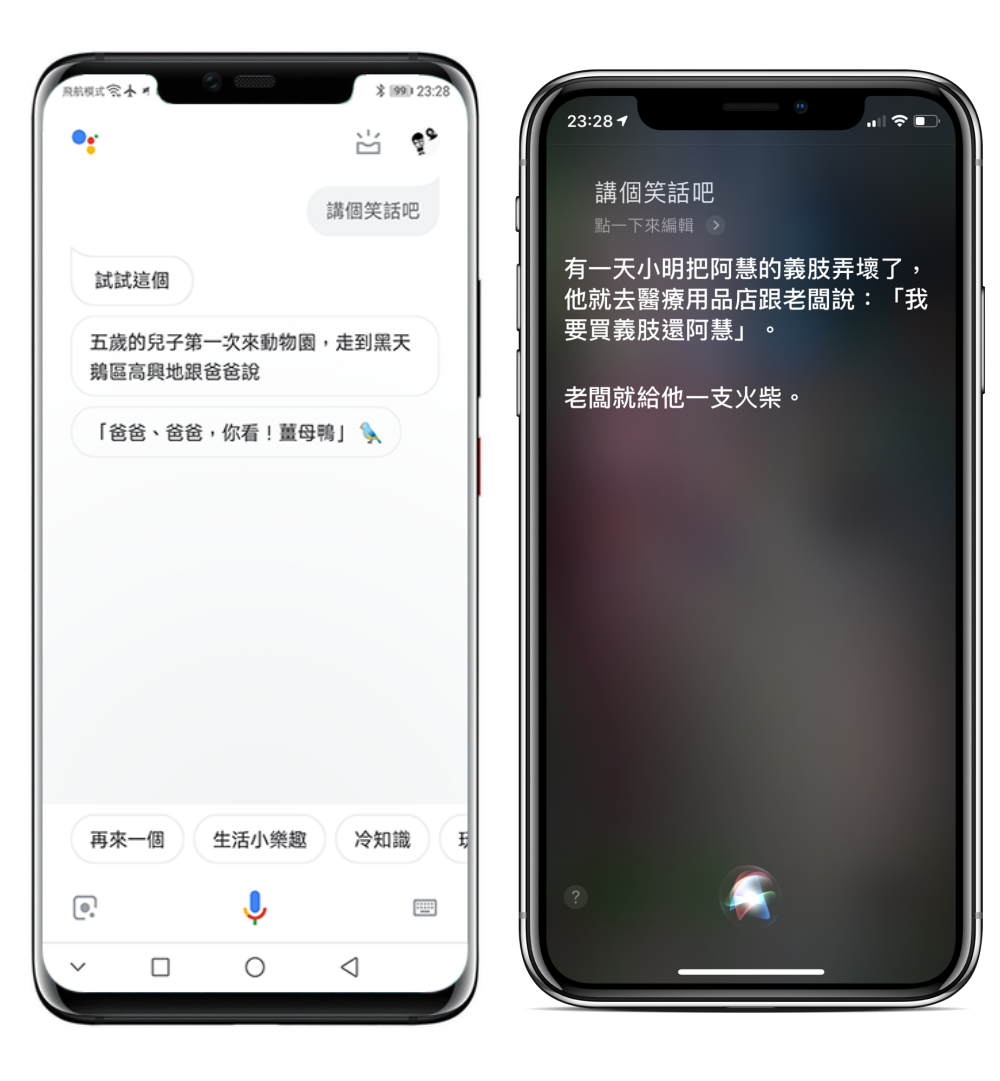 下面開始左圖為 Google 語音助理,右圖為 Siri 語音助理。