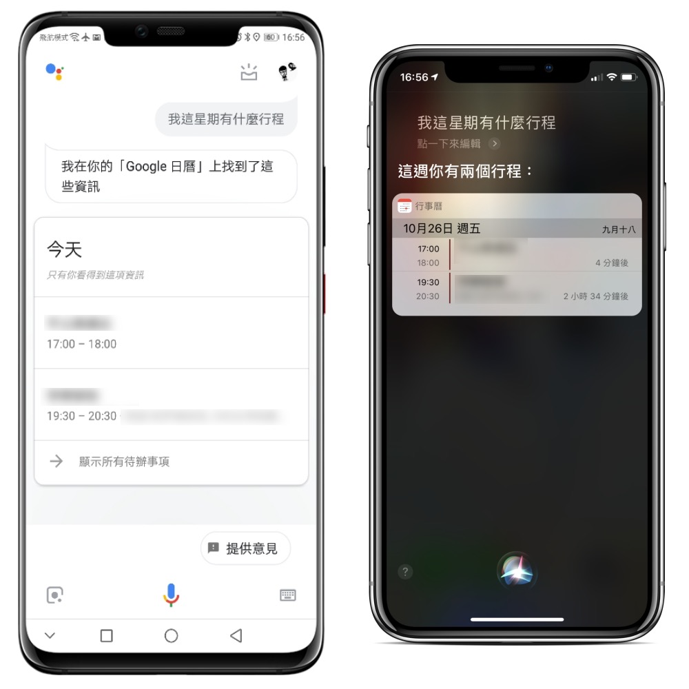 至於查詢行事曆就更有趣了,詢問這禮拜有什麼行程,Google 無法辨識,但 Siri 可以。