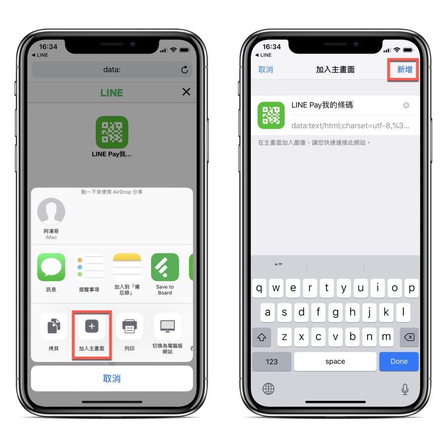 iPhone 的建立捷徑步驟比較多,要使用網址的方式來新增,按照阿湯截圖的步驟就可以囉。