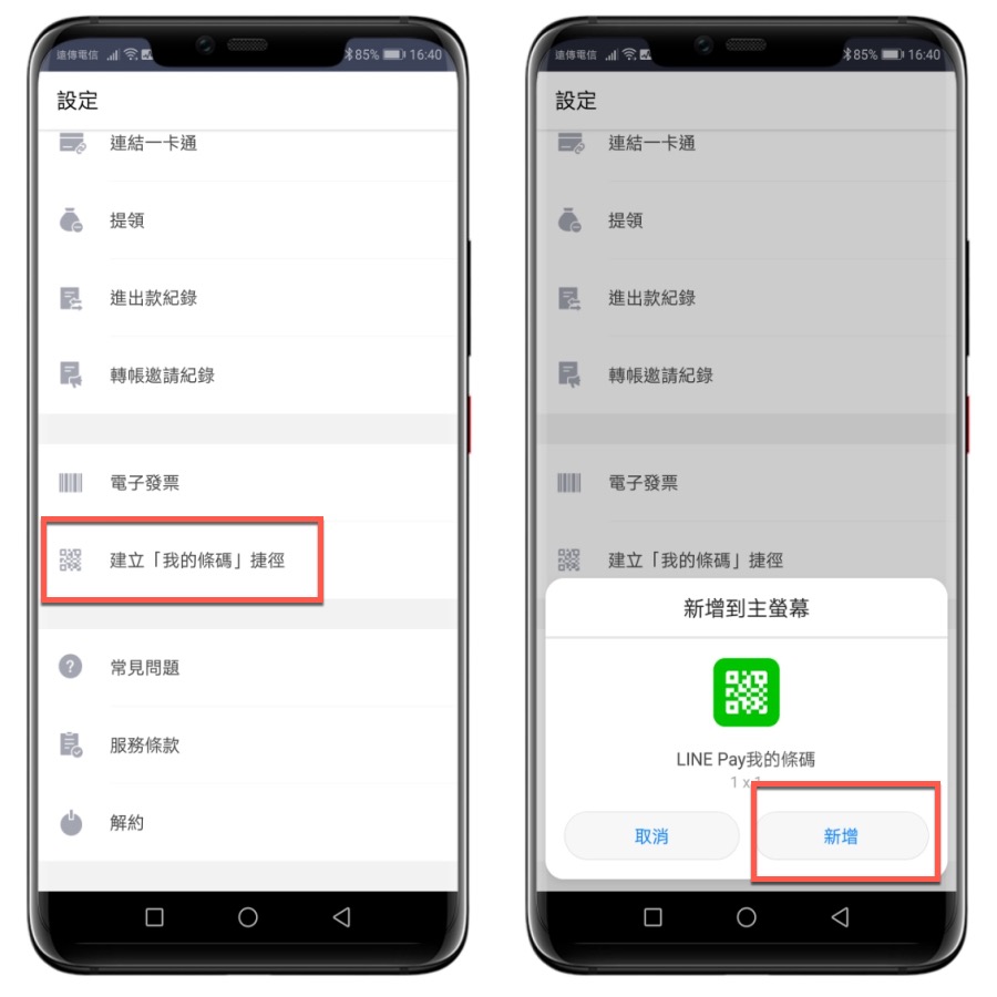 如果是 Android 手機的用戶,簡單很多,按建立條碼捷徑後,就可以直接新增到主螢幕上了,大家快去設定吧,以後電子發票的手機條碼就不用再東找西找忘記放哪了。