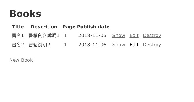 rails generate scaffold Book title:string descrition:text page:integer publish_date:date