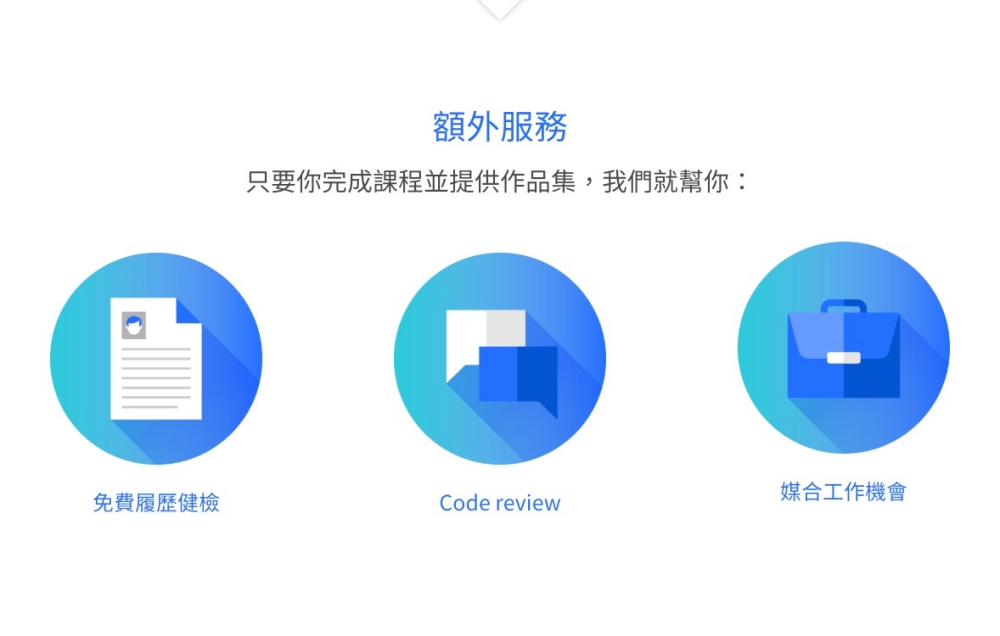 而除了學習程式之外,額外在課程的部份還加上了求職必備的幾個課程內容,像是怎麼寫開發者履歷、發問技巧,了解使用者在想什麼等,相當的實用,拉到最後面一看居然還有 A、B、C、D 四個特別單元,分別邀請了業界幾位知名的大師來指點指點,先不說課程,平常要找這些大師來上課都不知道要花多少錢啦(有錢也要人家有時間啊,都是大忙人吶)。