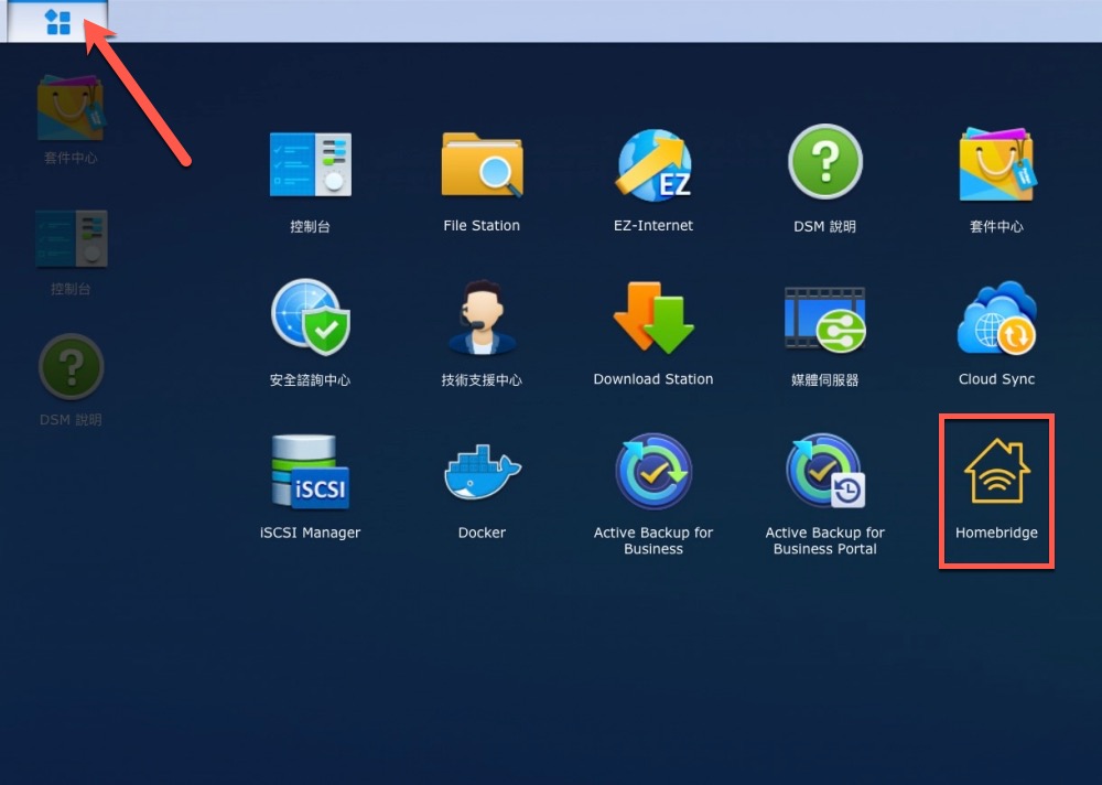 安裝成功後,會在選單中看到多一個 Homebridge,請點他,會另開一個新的網頁。