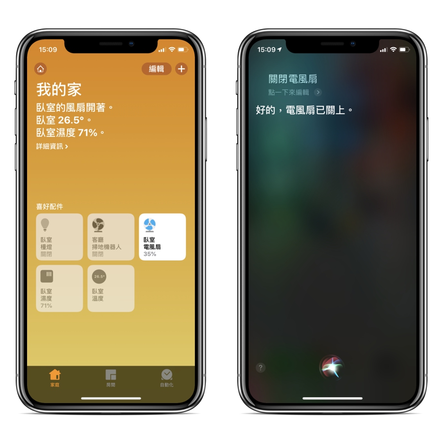在往下看要怎麼做之前先給大家看一下,這是我的 Homekit APP 畫面,目前結合了三個小米設備,而且能讓 Siri 語音控制這些設備的開關或更多操作,有興趣研究就往下來看吧。