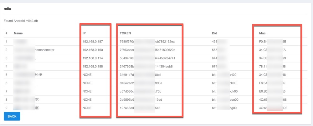 就會看到所有你有登入在米家 APP 家電清單,包括配置中可能會需要用到的 IP、Token、mac 位址,這樣取得是最快的。