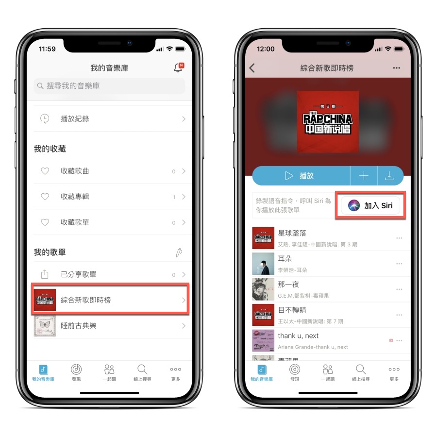 接下來只要對著 Siri 說,新歌排行榜,就會播放了,大家可以用這樣的方式加入不同的歌單跟指令,平常不開手機也能快速播放喜歡的音樂。
