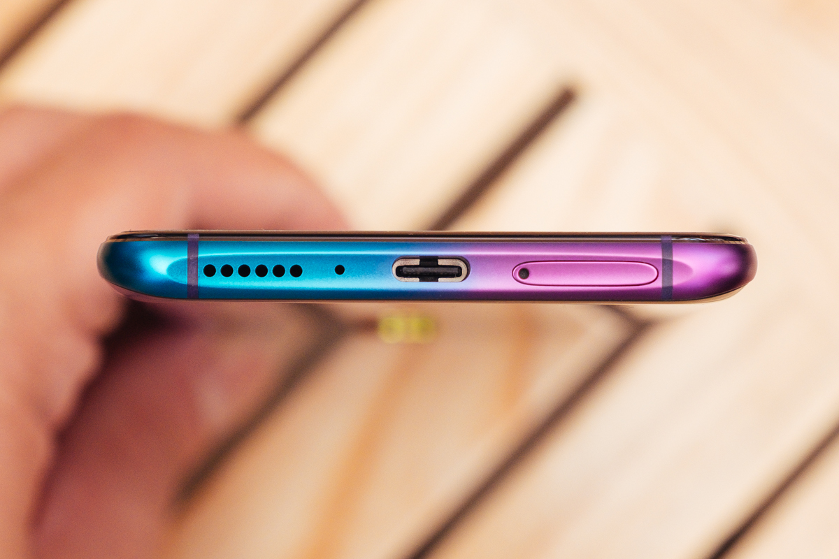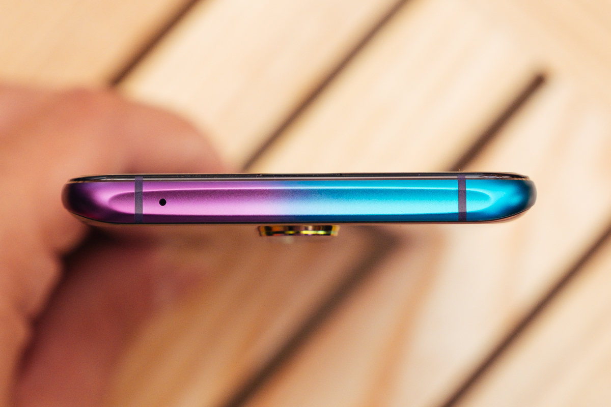 在 OPPO R17 Pro 的霧光漸變設計上真的做的超徹底,連上下同樣都做了漸變色交錯。